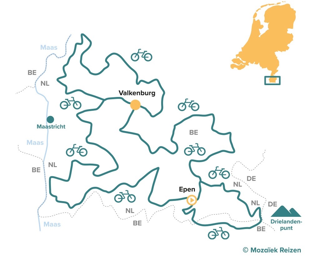 Deze fietsvakantie is een leuke en afwisselende tocht voor gasten die het mooie heuvellandschap van Zuid-Limburg (op een andere manier) willen verkennen.